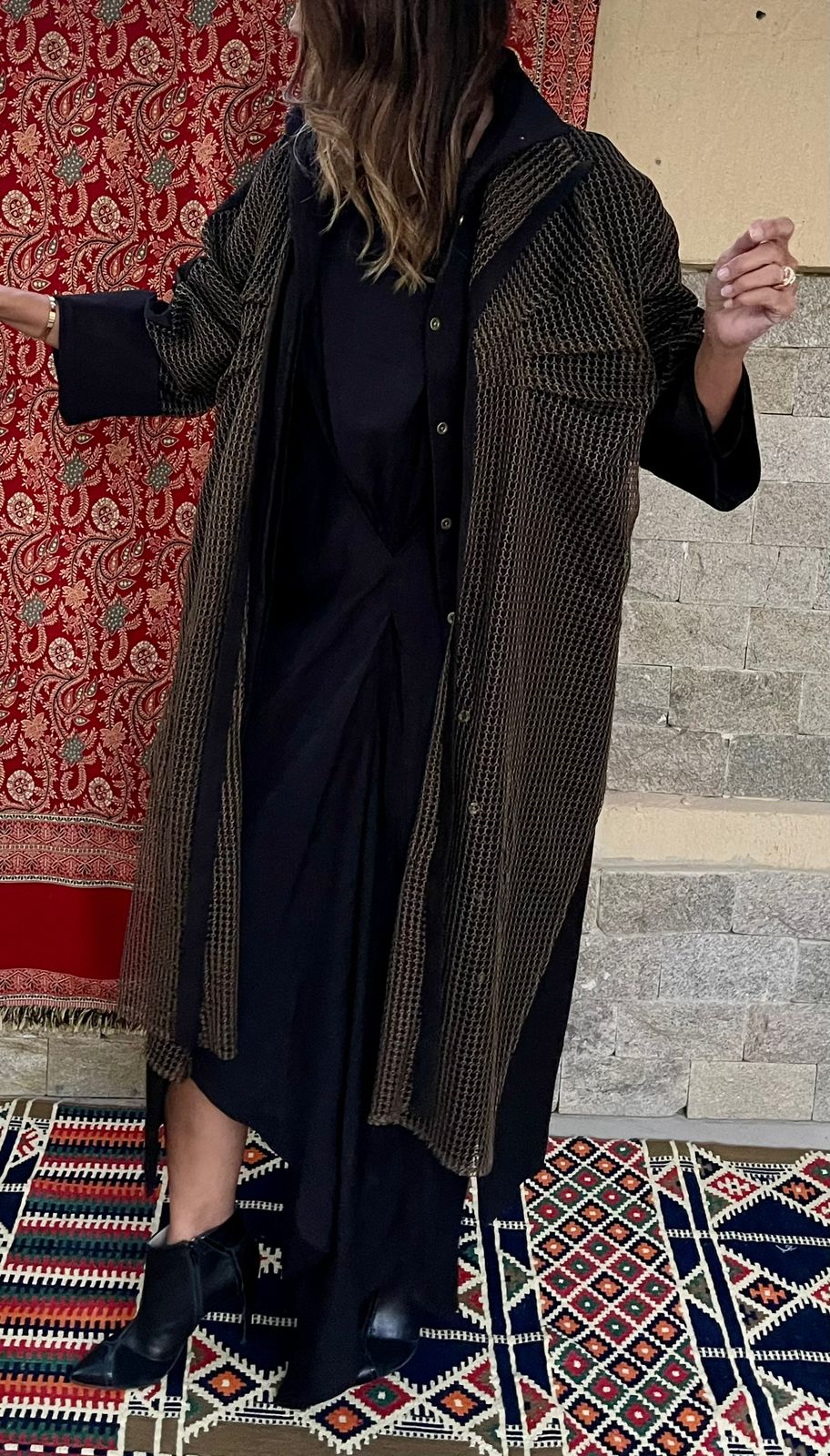 This elegant open-front cardigan features a chic mesh overlay and wide sleeves for a sophisticated, modern look. The adjustable waist tie enhances the silhouette, making it a perfect layering piece for both casual and formal occasions.
